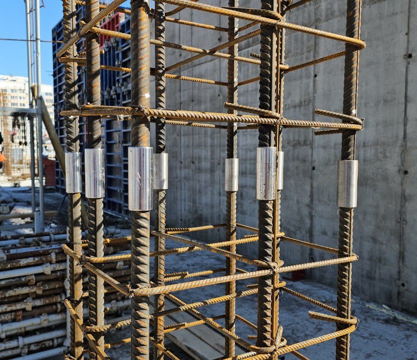 - Универсальность по длине — можно соединять стержни любой длины, включая длинномерную арматуру, без потери прочности.